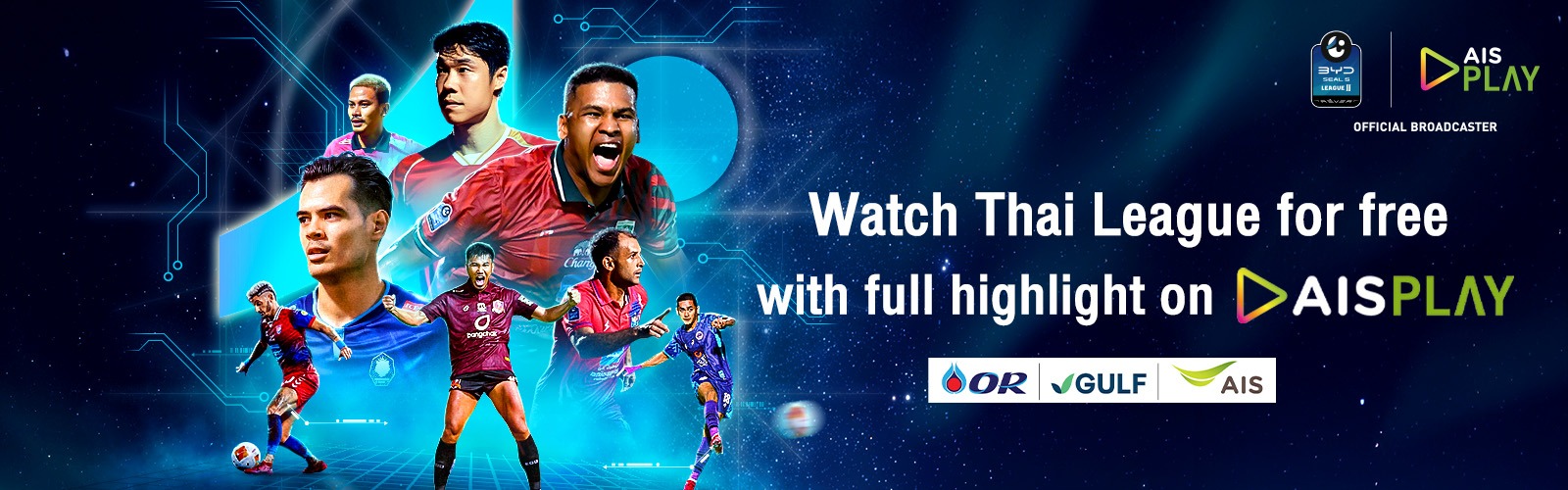 All customers from every network can watch Thai League matches for free — all leagues, every match live — on AIS PLAY.
