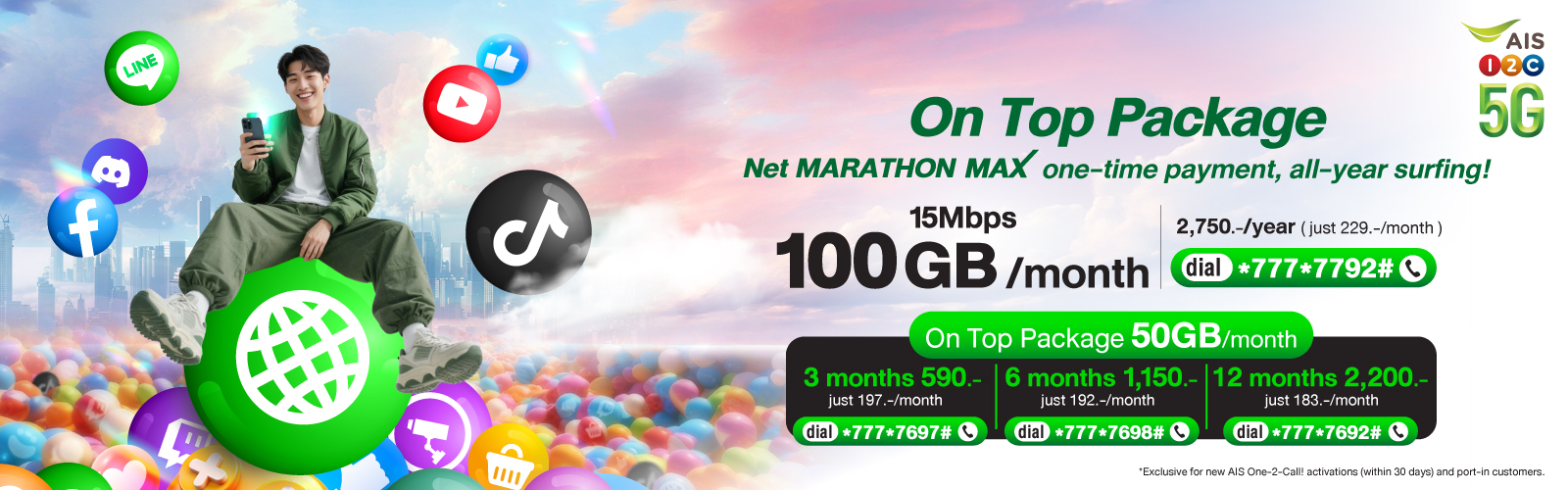 On Top package Net Marathon Max SIM 2,200 Baht 1,150 Baht and 590 Baht Terms and Conditions