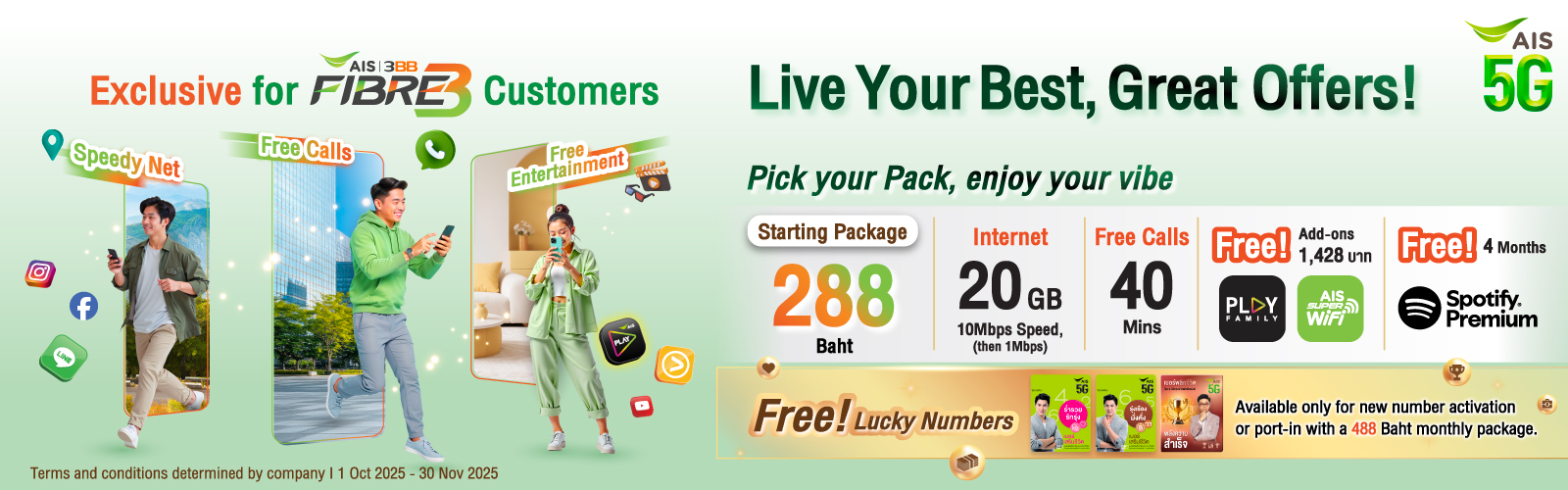 New Sign-ups: Available exclusively for AIS postpaid customers through 3BB Shop.