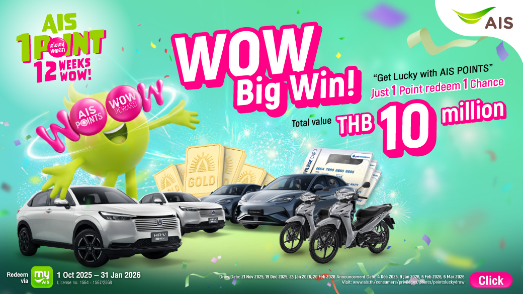 This program is reserved for individual AIS or AIS SMEs customer who is already registered AIS Points program and participating partner Points program. customer have to connect thier partner Points account (e.g., Bankchak Points, K Point, POINTX) by using personal information at myAIS app. customer registered citizen ID and/or mobile number must match between AIS and Partner.